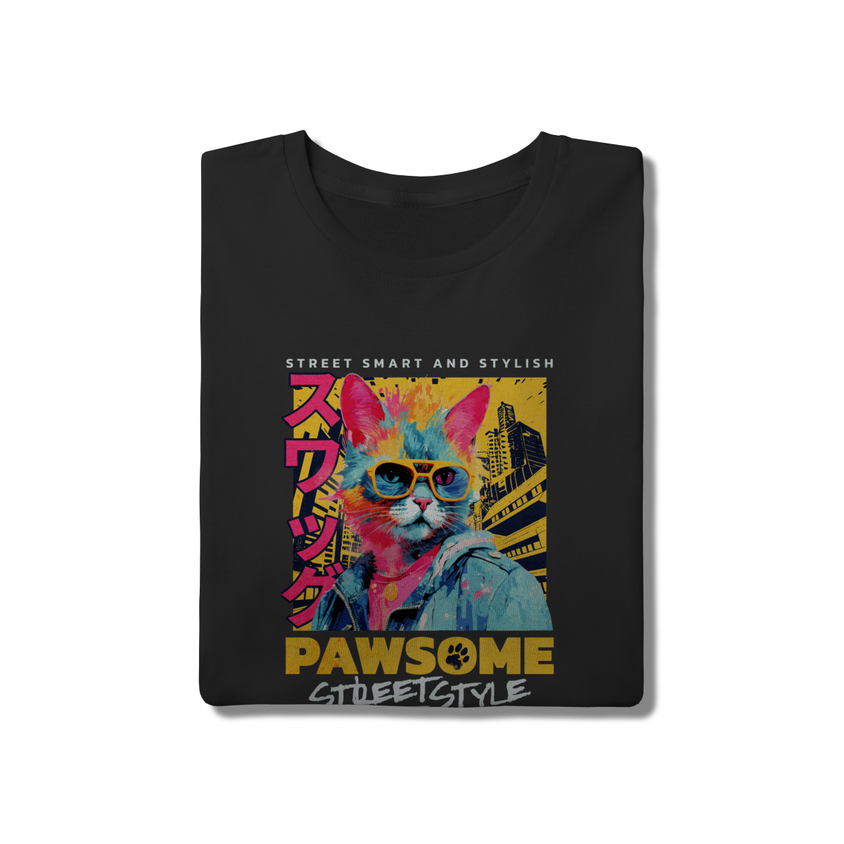 • Unimos a paixão por felinos com a cultura urbana nesta camiseta "Pawsome Streetstyle". Com estampa colorida em estilo Pop Art sobre o fundo preto, esta peça em 100% algodão é indispensável para um look despojado e divertido. Modelagem clássica que se ajusta perfeitamente ao corpo, garantindo frescor e estilo o dia todo.