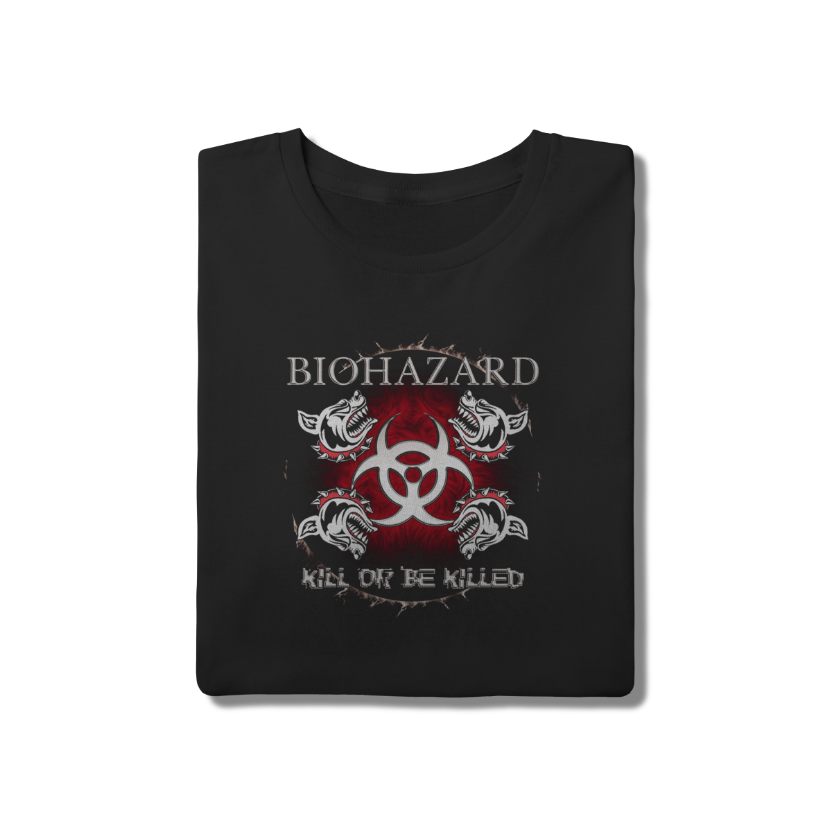 Atitude urbana e peso sonoro definem a camiseta Biohazard "Kill or Be Killed". Com o símbolo do risco biológico e os cães de guarda em destaque, esta peça é a cara do Hardcore nova-iorquino. Feita em malha 100% algodão de fibras longas, proporciona um toque sedoso na pele e excelente caimento. Resistente, confortável e pronta para qualquer rolê.