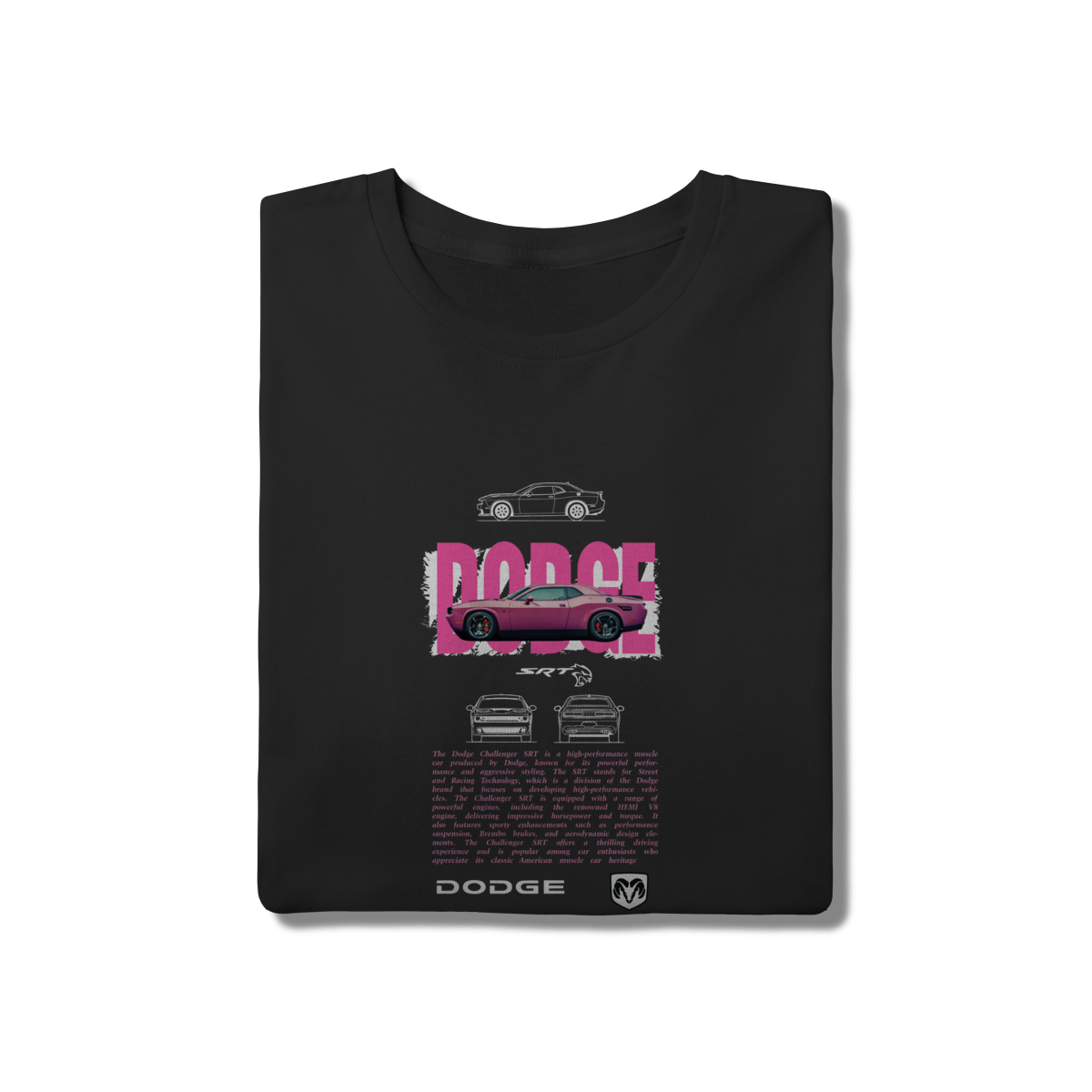 • Quem disse que potência não combina com cores vibrantes? Esta estampa traz o moderno Challenger SRT em um rosa intenso, contrastando com o fundo blueprint técnico. Uma peça que une a herança da Dodge com um visual contemporâneo e cheio de atitude para todas as idades.