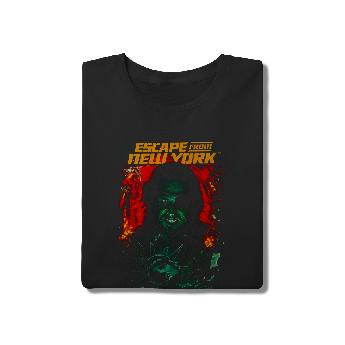 Entre na zona de segurança com a Camiseta Fuga de Nova York. Com o rosto de Snake Plissken (Kurt Russell) e a estética distópica de John Carpenter, esta peça é puro estilo cult. Feita em tecido 100% algodão, oferece o conforto necessário para enfrentar qualquer missão urbana.