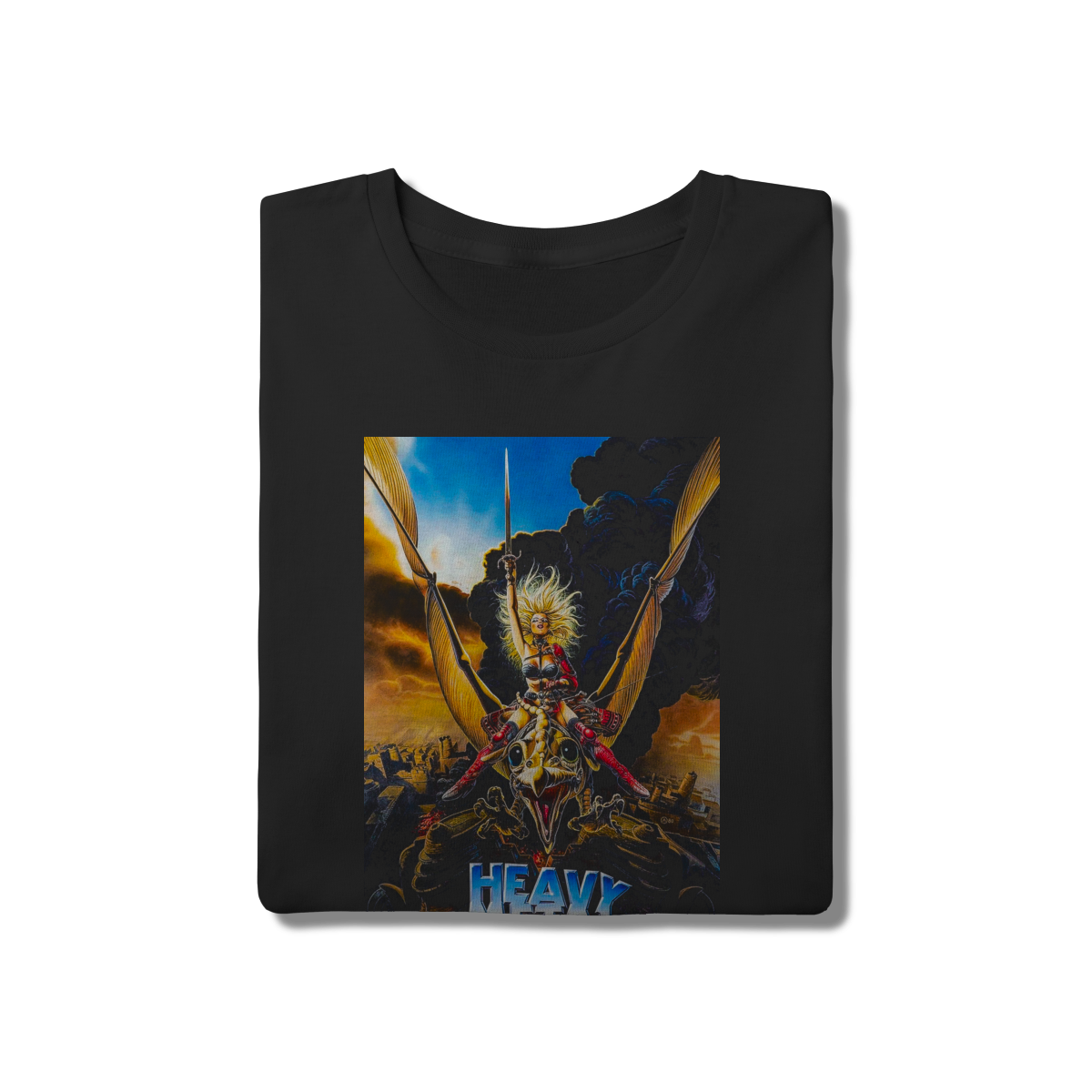 Uma homenagem à obra-prima da animação e fantasia sci-fi. Esta camiseta traz a arte clássica da guerreira Taarna, ícone do filme "Heavy Metal" de 1981. Feita para quem aprecia arte fantástica e trilhas sonoras épicas, possui modelagem clássica e tecido em algodão puro, unindo resistência e conforto extremo.
