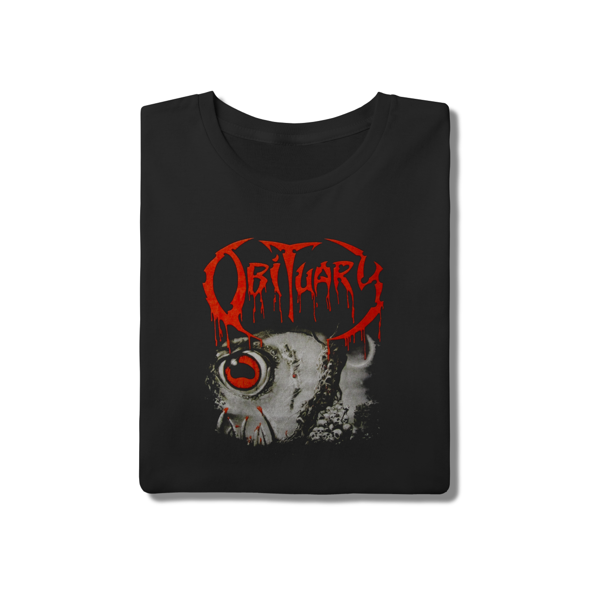Domine o visual Underground com a camiseta da lenda do Death Metal, Obituary. Esta peça apresenta uma arte visceral em tons de vermelho e branco sobre o preto profundo, garantindo destaque máximo. Fabricada em malha premium 100% algodão, oferece o toque macio e a durabilidade que todo headbanger exige. Gola careca com reforço e modelagem confortável para o dia a dia ou para o mosh pit.