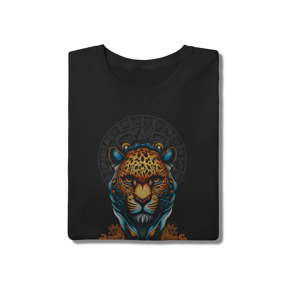 A união perfeita entre a natureza brasileira e a cultura ancestral. Esta t-shirt apresenta a onça-pintada emoldurada por símbolos do calendário asteca, criando um visual tribal e imponente. Confeccionada em malha tradicional para um caimento perfeito e confortável.
