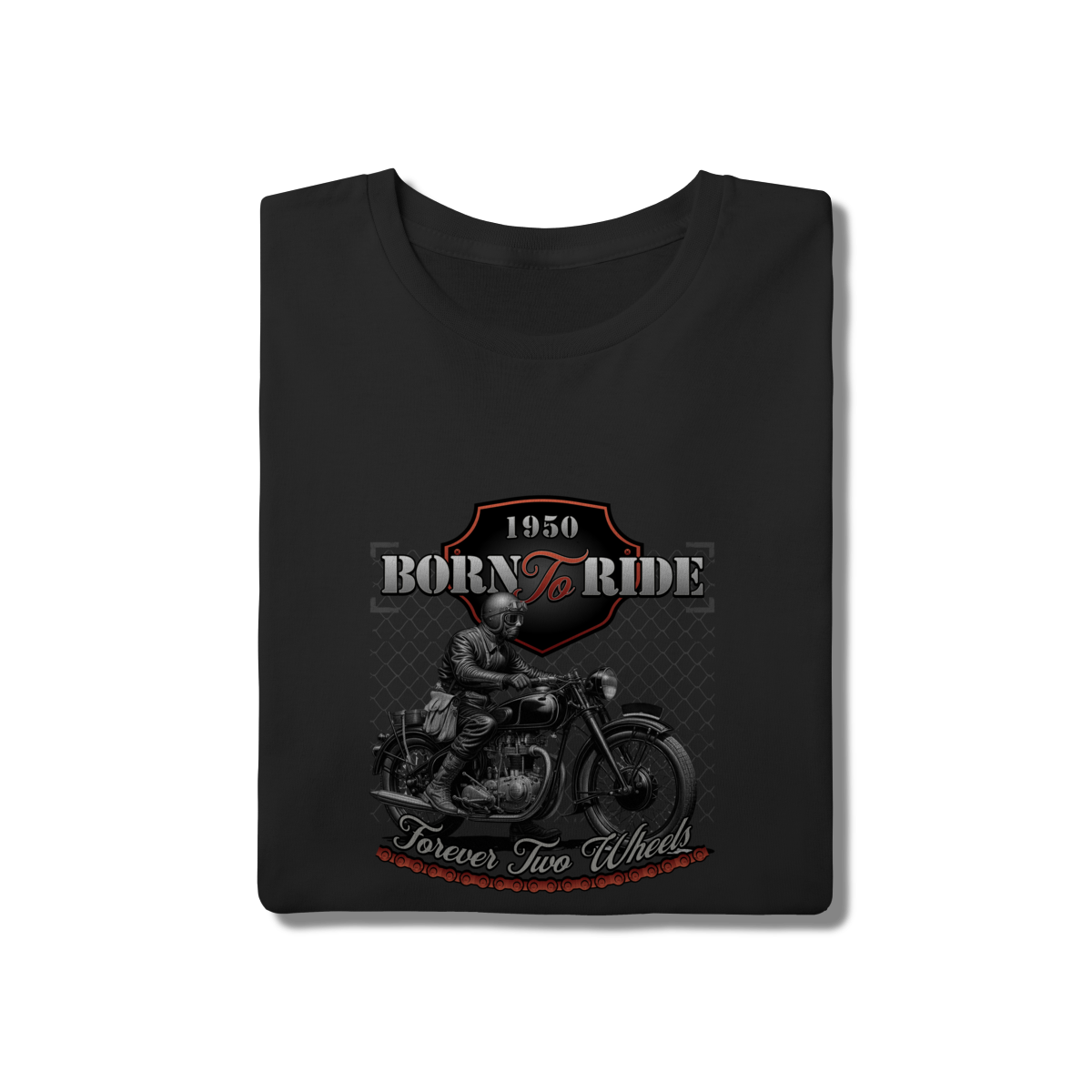 • Sinta a liberdade das estradas com a Camiseta "Born To Ride". Esta peça homenageia a cultura custom com uma ilustração detalhada de uma motocicleta clássica e tipografia vintage. Confeccionada em algodão de alta qualidade e modelagem tradicional, é o item indispensável para o guarda-roupa de qualquer apaixonado por duas rodas. Durável e confortável, essa camiseta preta une a tradição mecânica ao conforto da fibra natural.