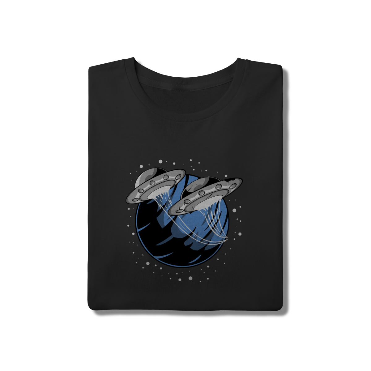 • Adicione um toque de mistério ao seu visual com a Camiseta "UFO Planet". Esta peça apresenta uma arte estilizada de discos voadores orbitando um planeta azul, perfeita para entusiastas de ficção científica e do estilo casual espacial. Confeccionada em malha 100% algodão com modelagem tradicional clássica, oferece o equilíbrio perfeito entre conforto térmico e durabilidade. Uma escolha versátil para quem busca um design criativo e despojado.