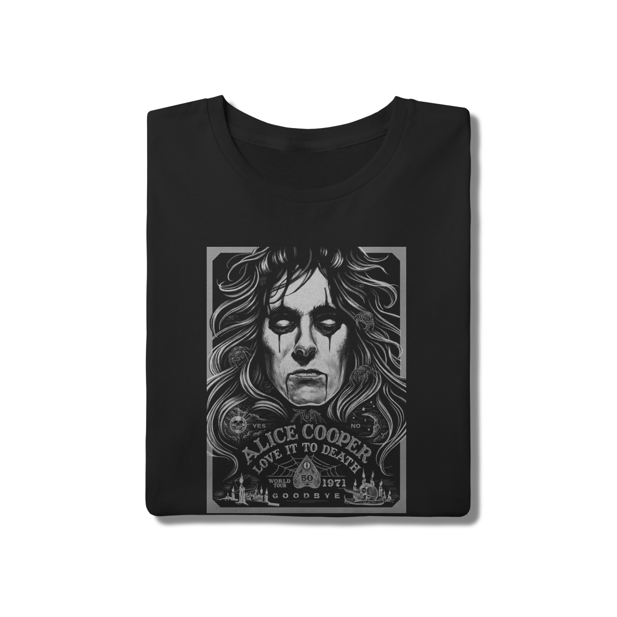 Camiseta preta Alice Cooper! Produzida em algodão da melhor qualidade, conferindo conforto e durabilidade. Possui gola reforçada e estampa premium! Rock N' Roll é com a Lúdica!