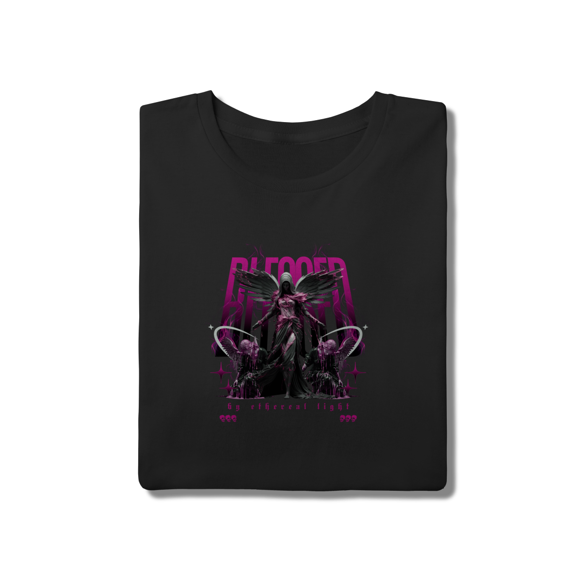 • Para quem valoriza artes detalhadas e expressivas. Esta camiseta traz a estampa "Blessed" com figuras angelicais em tons de rosa e preto, criando um visual etéreo e sofisticado. Confeccionada em malha tradicional 100% algodão, oferece toque macio e excelente ventilação. Uma peça exclusiva para elevar seu guarda-roupa com o melhor do streetwear artístico.