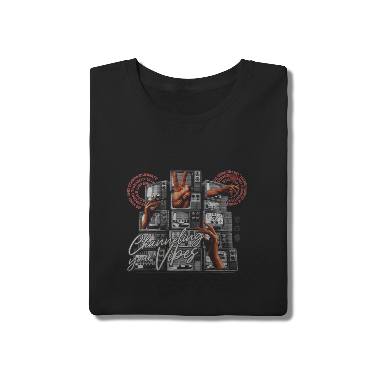 • Reviva a estética dos anos 90 com a Camiseta "Channeling Your Vibes". Com uma estampa artística que empilha televisores antigos e elementos surreais, esta peça é um ícone do estilo Vaporwave/Aesthetic. Produzida em tecido de algodão de toque macio e corte tradicional clássico, ela garante conforto absoluto e um caimento perfeito. Ideal para compor looks criativos que transmitem boas energias e estilo retrô.