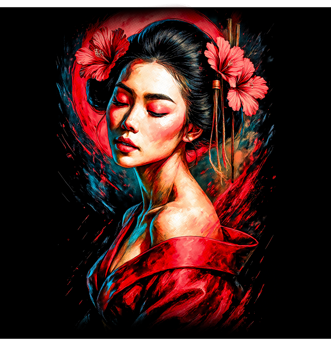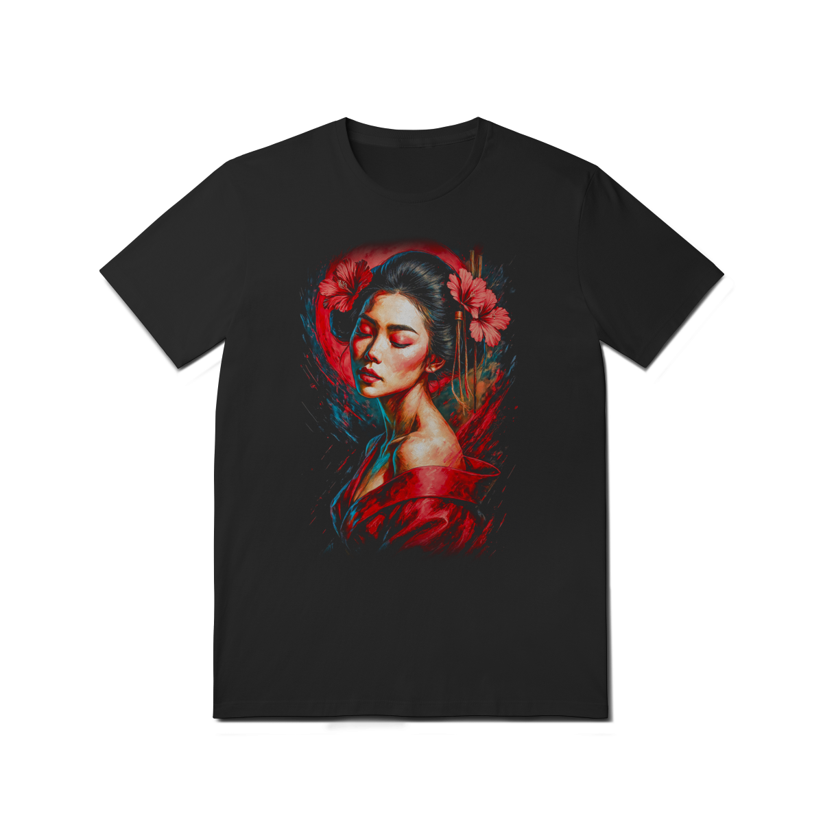 Camiseta Preta Gueixa! Produzida em algodão da melhor qualidade, conferindo conforto e durabilidade. Possui gola reforçada e estampa premium! Conheça a magia do Oriente com a Lúdica!