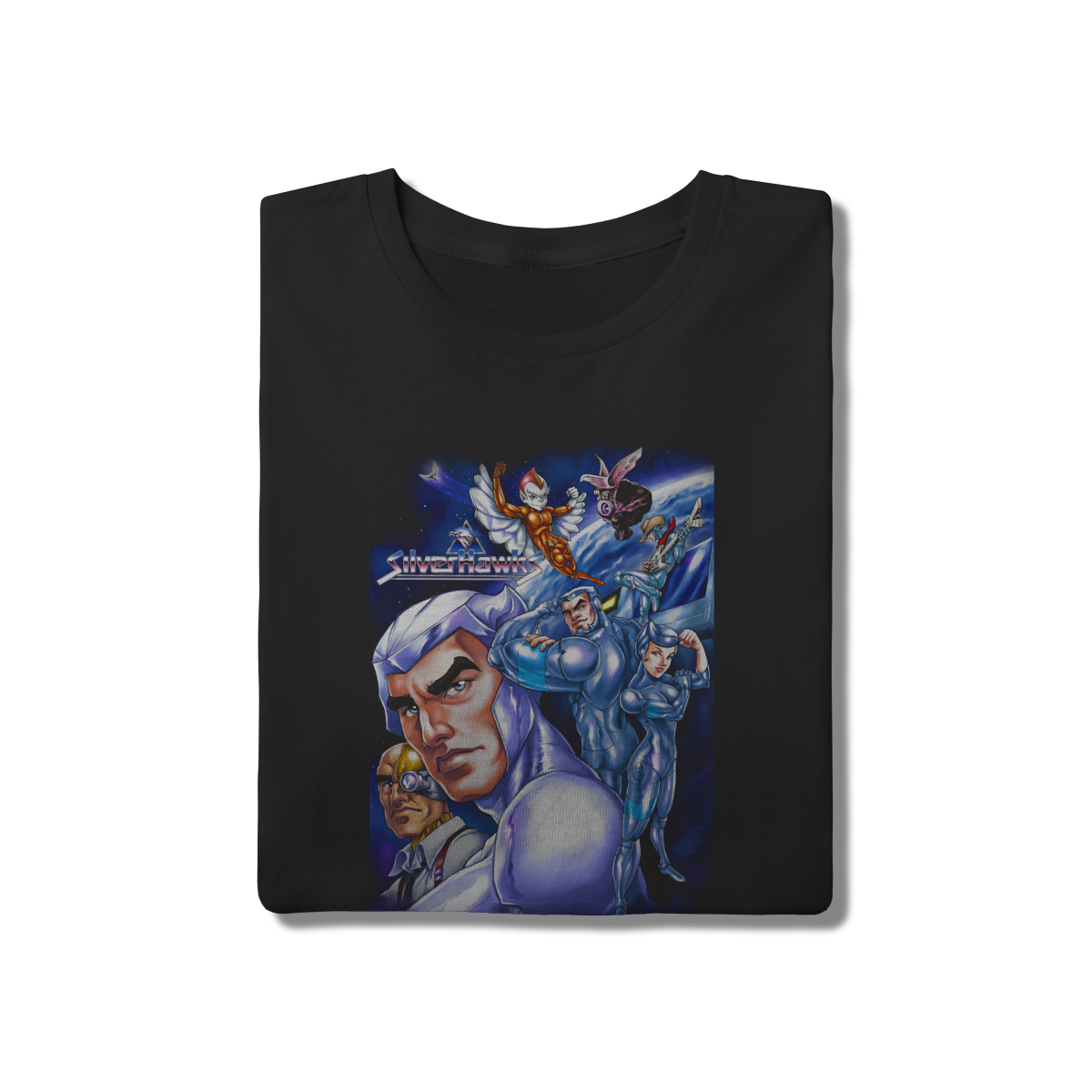 • Reviva a era dos heróis metálicos com a camiseta exclusiva dos SilverHawks! Com uma estampa detalhada que reúne os principais personagens da série, esta peça é um verdadeiro item de colecionador. O tecido 100% algodão garante maciez e durabilidade, enquanto a cor preta destaca as cores vivas da arte. Um clássico "os robôs de prata" para quem viveu o melhor da animação retro.