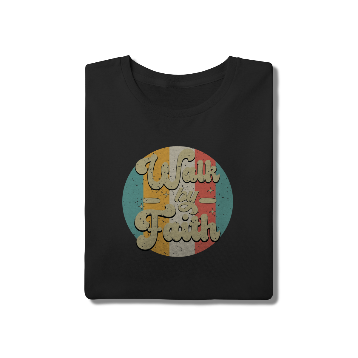 • Inspirada no versículo bíblico, a estampa "Walk by Faith" traz um design geométrico retrô que nunca sai de moda. Perfeita para testemunhar sua jornada com elegância e conforto. O fundo preto destaca as cores pastéis da estampa, garantindo um visual premium para sua loja online.