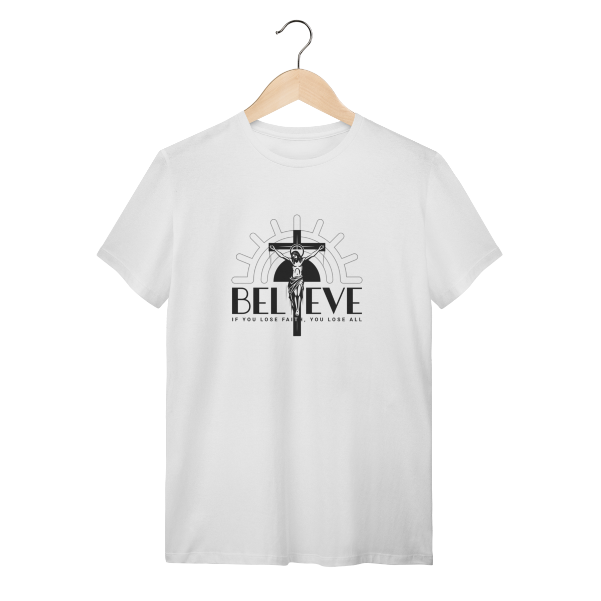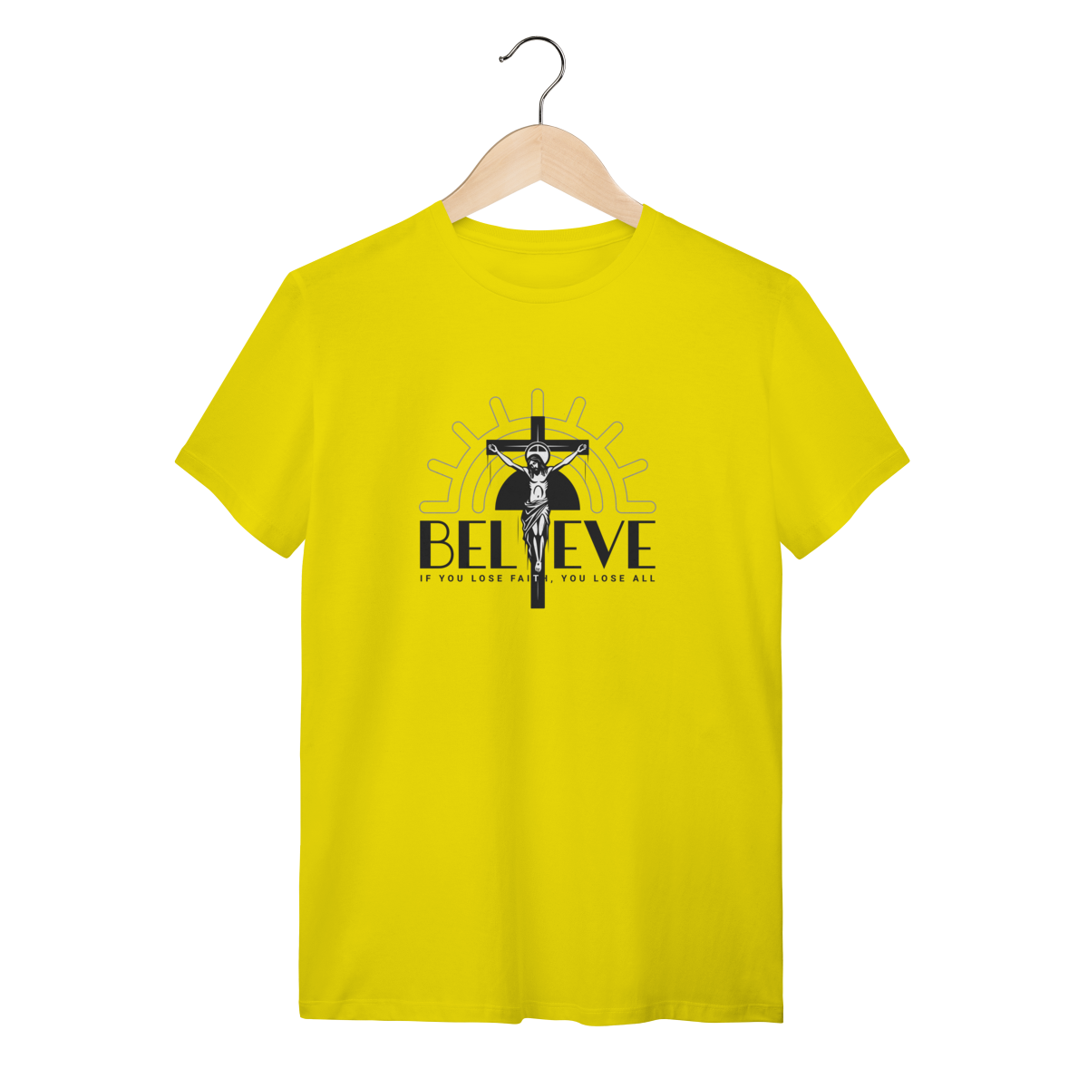 Camiseta Worship Believe! Produzida em algodão da melhor qualidade, conferindo conforto e durabilidade. Possui gola reforçada e estampa premium! Fortaleça a Sua Fé com a Lúdica!